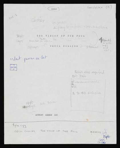- Available online are fabrics designs, and writings relating to 'The Vision of the Fool' by Cecil Collins.