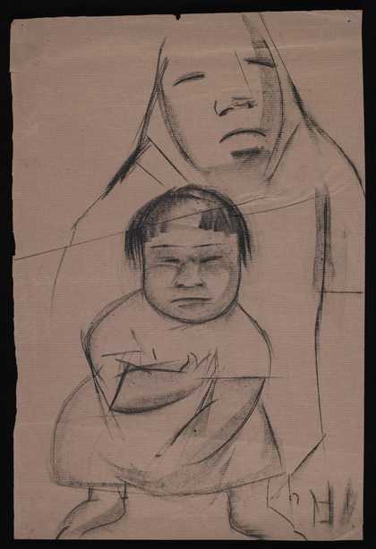 Sketch of a woman holding a child