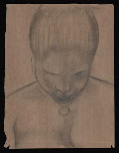 Sketch of the head of a woman looking down