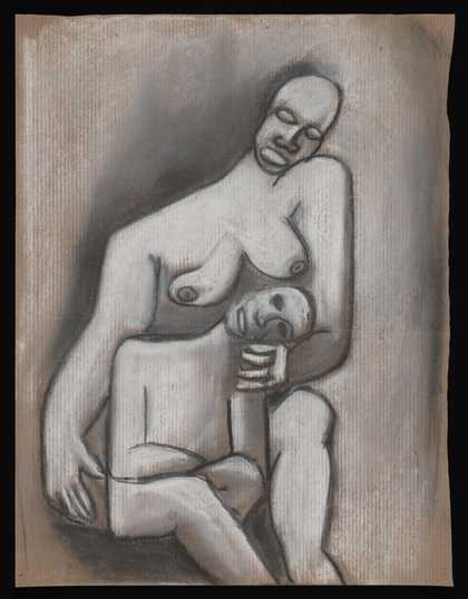 Sketch of a nude woman and child