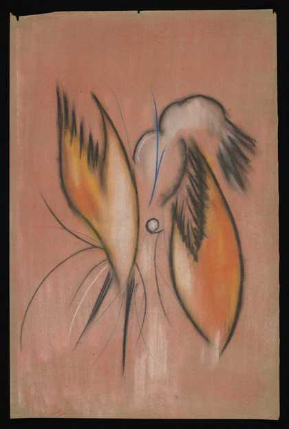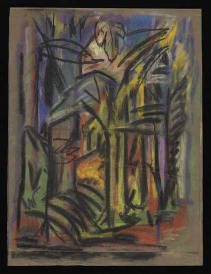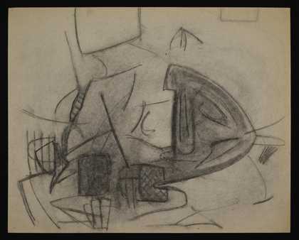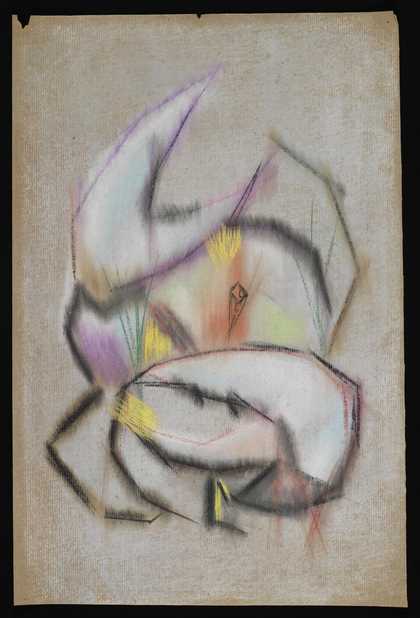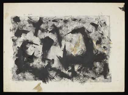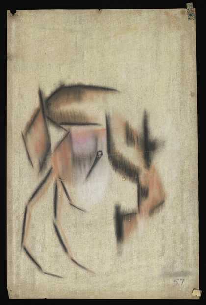 Abstract sketch on the reverse of an advert for an exhibition of works by artists including Aubrey Williams at the Galerie Colette Allendy