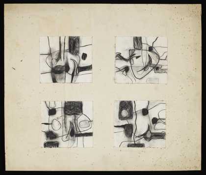 Four abstract sketches all mounted on the same piece of card