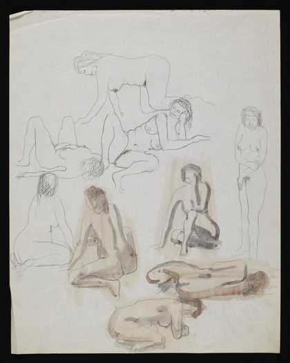 Nine sketches of female nudes in various positions