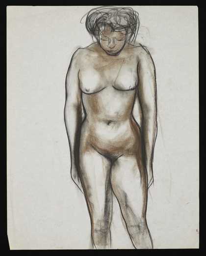Sketch of a female nude looking down