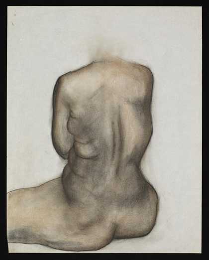 Sketch of a nude female torso from behind