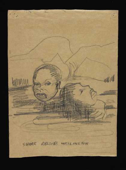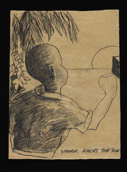 Sketch entitled ‘Shark Races the Sun’ and sketch of abstract shapes