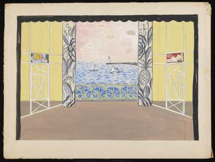 Untitled set design showing a balcony looking out to sea