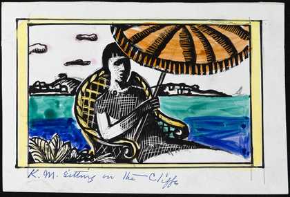 Worked print titled ‘K. M. Sitting on the Cliffs’