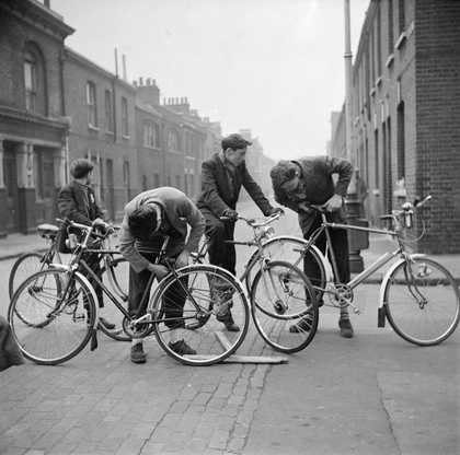 Items available online are photographs taken by Nigel Henderson from the late 1940s to the mid 1950s. Included in this selection is an extensive series of images of the East End of London which Henderson shot between the late 1940s and early 1950s. This collection of images records aspects of one of London's working class communities and covers events such as celebrations for the 1953 Coronation of H.M. Queen Elizabeth II, activites around Henderson's home and street, and jazz musicians and artists. Also included in this selection are images of Eduardo Paolozzi and his work.