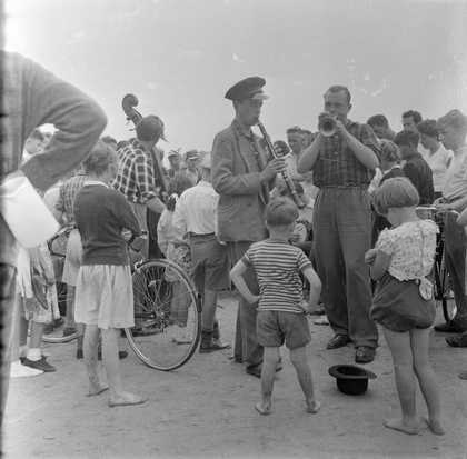 Items available online are photographs taken by Nigel Henderson from the late 1940s to the mid 1950s. Included in this selection is an extensive series of images of the East End of London which Henderson shot between the late 1940s and early 1950s. This collection of images records aspects of one of London's working class communities and covers events such as celebrations for the 1953 Coronation of H.M. Queen Elizabeth II, activites around Henderson's home and street, and jazz musicians and artists. Also included in this selection are images of Eduardo Paolozzi and his work.