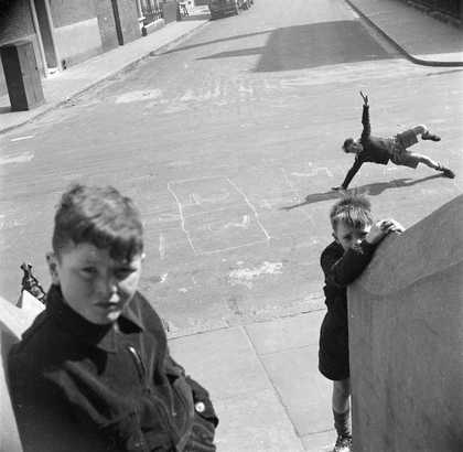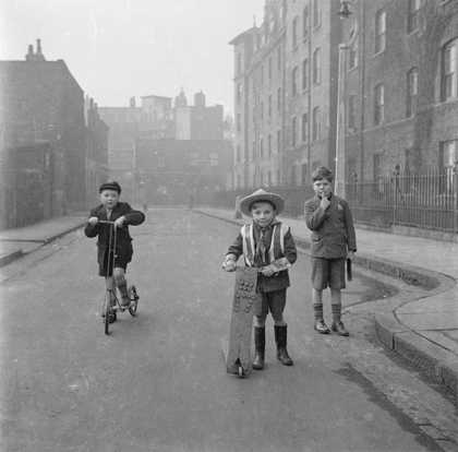 Items available online are photographs taken by Nigel Henderson from the late 1940s to the mid 1950s. Included in this selection is an extensive series of images of the East End of London which Henderson shot between the late 1940s and early 1950s. This collection of images records aspects of one of London's working class communities and covers events such as celebrations for the 1953 Coronation of H.M. Queen Elizabeth II, activites around Henderson's home and street, and jazz musicians and artists. Also included in this selection are images of Eduardo Paolozzi and his work.