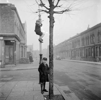 Items available online are photographs taken by Nigel Henderson from the late 1940s to the mid 1950s. Included in this selection is an extensive series of images of the East End of London which Henderson shot between the late 1940s and early 1950s. This collection of images records aspects of one of London's working class communities and covers events such as celebrations for the 1953 Coronation of H.M. Queen Elizabeth II, activites around Henderson's home and street, and jazz musicians and artists. Also included in this selection are images of Eduardo Paolozzi and his work.