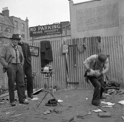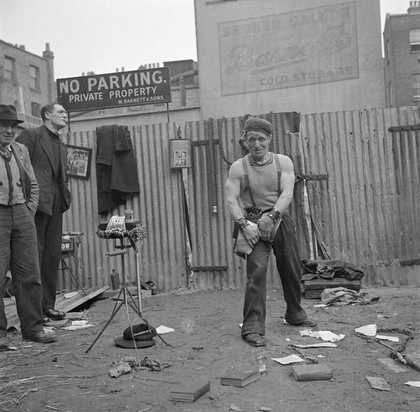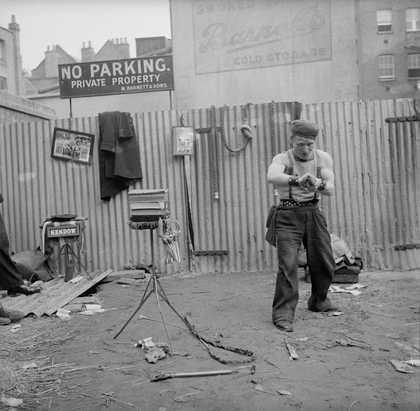 Items available online are photographs taken by Nigel Henderson from the late 1940s to the mid 1950s. Included in this selection is an extensive series of images of the East End of London which Henderson shot between the late 1940s and early 1950s. This collection of images records aspects of one of London's working class communities and covers events such as celebrations for the 1953 Coronation of H.M. Queen Elizabeth II, activites around Henderson's home and street, and jazz musicians and artists. Also included in this selection are images of Eduardo Paolozzi and his work.
