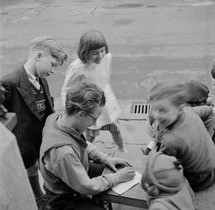 Items available online are photographs taken by Nigel Henderson from the late 1940s to the mid 1950s. Included in this selection is an extensive series of images of the East End of London which Henderson shot between the late 1940s and early 1950s. This collection of images records aspects of one of London's working class communities and covers events such as celebrations for the 1953 Coronation of H.M. Queen Elizabeth II, activites around Henderson's home and street, and jazz musicians and artists. Also included in this selection are images of Eduardo Paolozzi and his work.