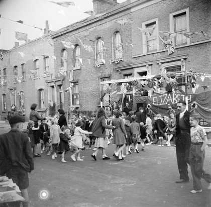 Items available online are photographs taken by Nigel Henderson from the late 1940s to the mid 1950s. Included in this selection is an extensive series of images of the East End of London which Henderson shot between the late 1940s and early 1950s. This collection of images records aspects of one of London's working class communities and covers events such as celebrations for the 1953 Coronation of H.M. Queen Elizabeth II, activites around Henderson's home and street, and jazz musicians and artists. Also included in this selection are images of Eduardo Paolozzi and his work.