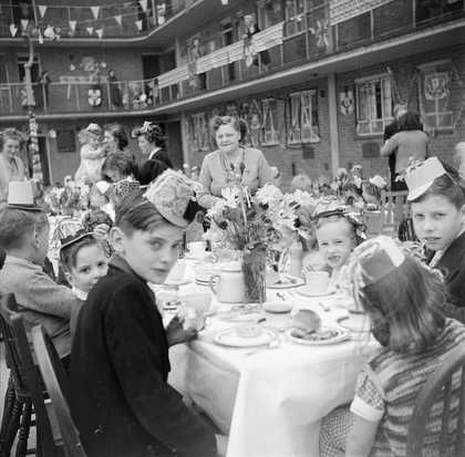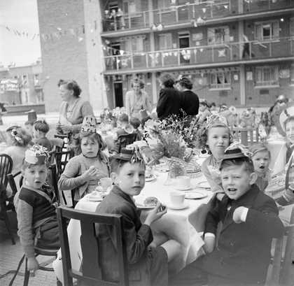 Items available online are photographs taken by Nigel Henderson from the late 1940s to the mid 1950s. Included in this selection is an extensive series of images of the East End of London which Henderson shot between the late 1940s and early 1950s. This collection of images records aspects of one of London's working class communities and covers events such as celebrations for the 1953 Coronation of H.M. Queen Elizabeth II, activites around Henderson's home and street, and jazz musicians and artists. Also included in this selection are images of Eduardo Paolozzi and his work.