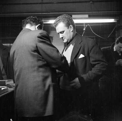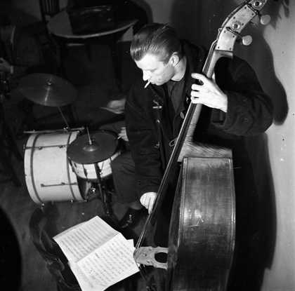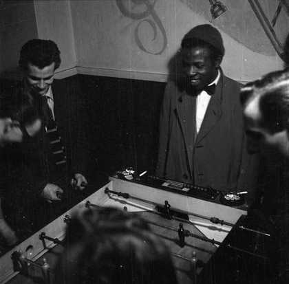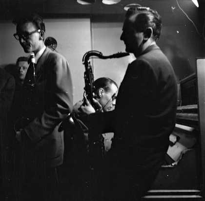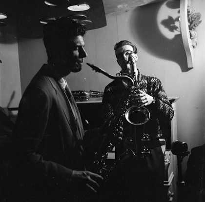 Photograph of jazz musicians, possibly Ronnie Scott and Derek Humble