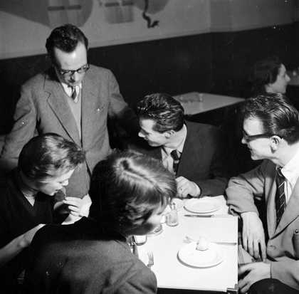 Photograph of jazz musicians including Ken Wray, Ronnie Scott, Pete King and Benny Green