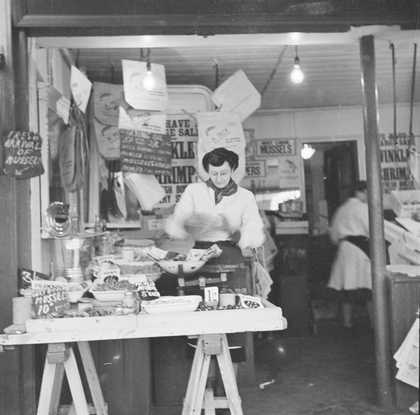 Photograph showing the interior of a fish shop
