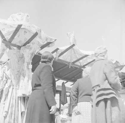 Photograph showing women at an outdoor market stall