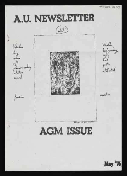 Box file labelled, ‘Artists Union (1) 1971-74. Women’s workshop, Newsletters, Conference, Education’