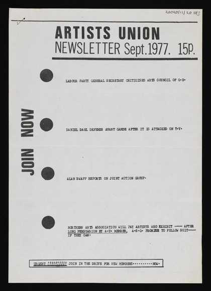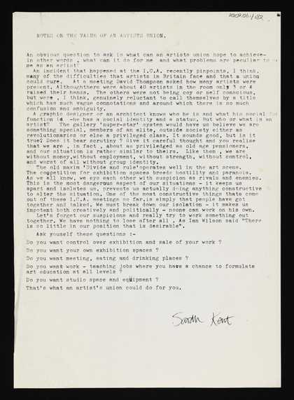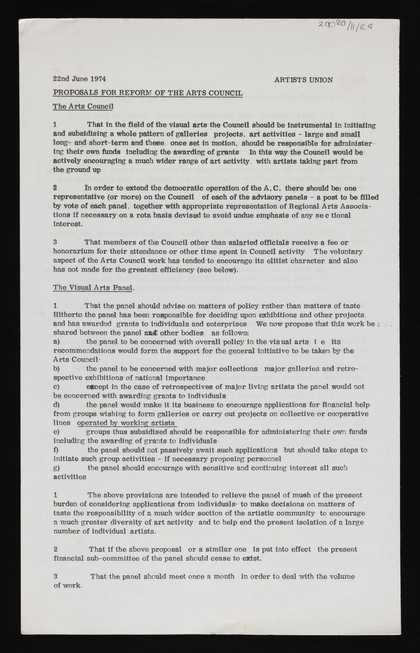 - Box file labelled, ‘Artists Union (30) Current 1974 - ’