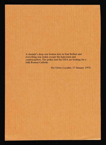 Photographs taken by Conrad Atkinson during his work in Northern Ireland for the exhibition, ‘A shade of green, an orange edge’