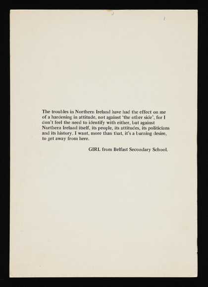 - Items chosen from this collection for digitisation include photographs of wall murals, posters, and graffiti Northern Ireland, taken by Conrad Atkinson during the 'Troubles' in the early 1970s, as well as source material and original sketches by the artist for the exhibition catalogue for 'A Shade of Green, An Orange Edge', at the Art Council Gallery, Belfast, 1975. Also chosen are writings and organisational documentation relating to the formation and activities of the Artists' Union.