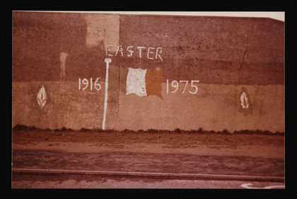 Colour photograph of a wall in Northern Ireland painted with an Irish flag and ‘Easter 1916-1975’