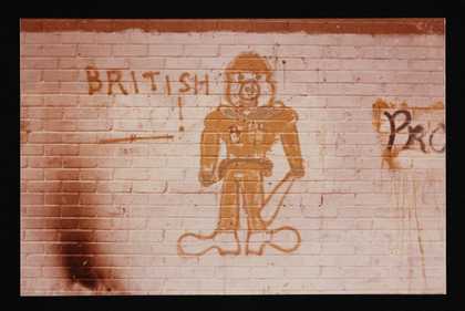Colour photograph of a wall in Northern Ireland painted with a pig, dressed in a police or army uniform, next to the word, ‘British’