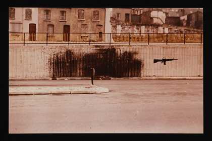 Colour photograph of a wall in Northern Ireland painted with a rifle