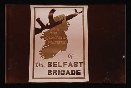 Colour photograph of a poster with the slogan, ‘Join the volunteer soldiers of the Belfast Brigade’