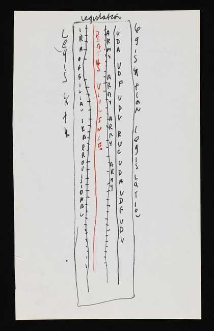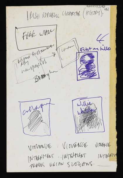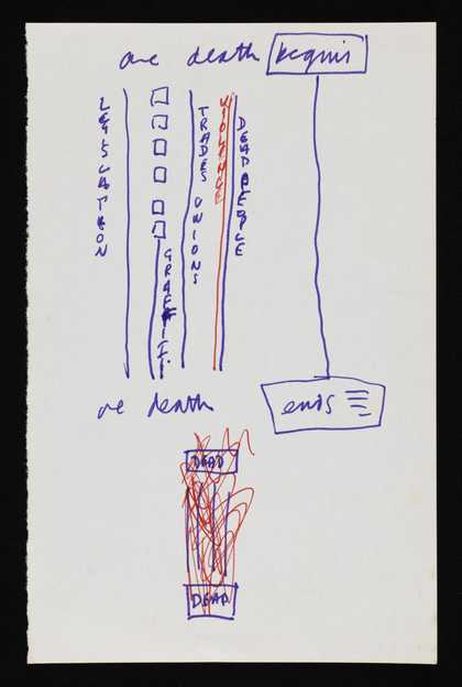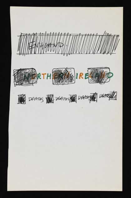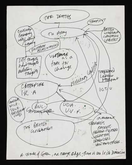 Sketch of a diagram illustrating the ‘Troubles’ in Northern Ireland by Conrad Atkinson for the exhibition catalogue, ‘A Shade of Green, An Orange Edge’