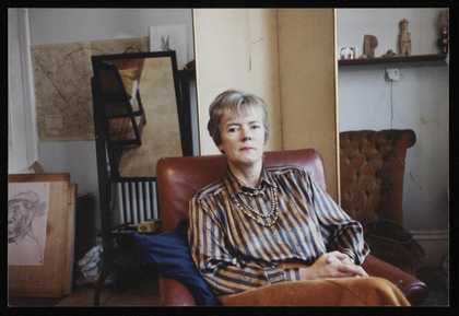 Photograph of Marina Hoffer, posing for her painting in Marie-Louise’s studio at 6 Chesterford Gardens, London