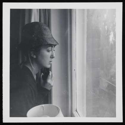Photograph of Marina Hoffer, posing for her painting in Marie-Louise’s studio at 6 Chesterford Gardens, London
