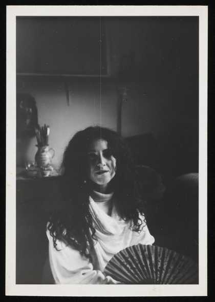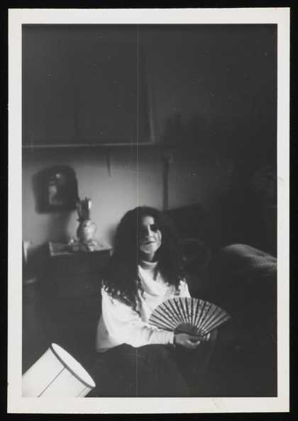 Photographs and negatives of unidentified girl with a fan in front of the unfinished painting ‘Model with Dog’