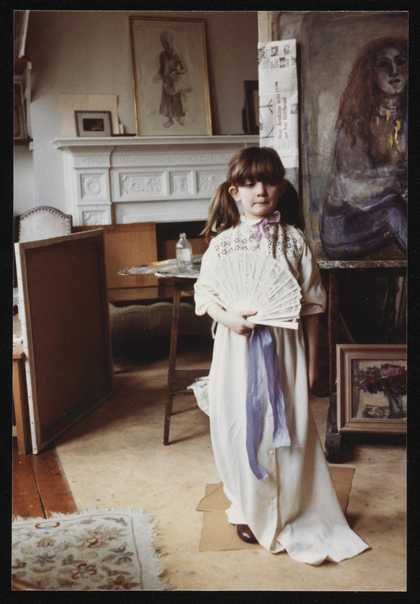 - Photographs and negatives of unidentified girl with a fan in front of the unfinished painting ‘Model with Dog’