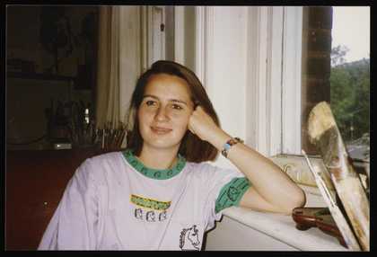 Photograph of Marina Hoffer, posing for her painting in Marie-Louise’s studio at 6 Chesterford Gardens, London