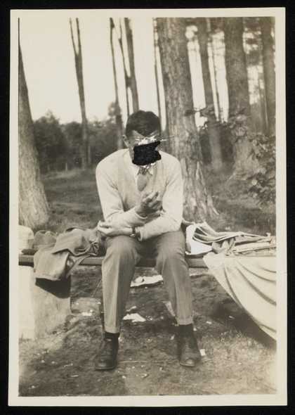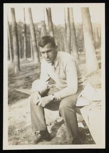 Photograph of Siegfried Sebba sitting in a forest