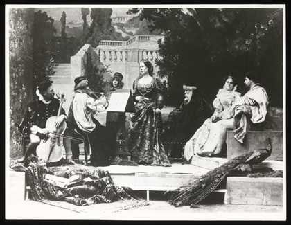 Photograph of a tableau vivant of Romeo and Juliet, by Hans Makart, held at Villa Todesco