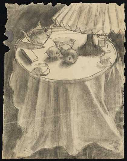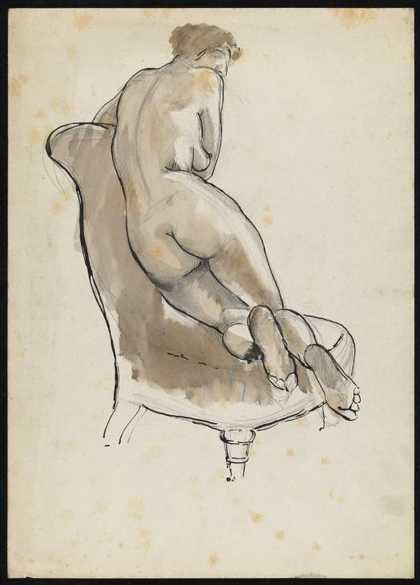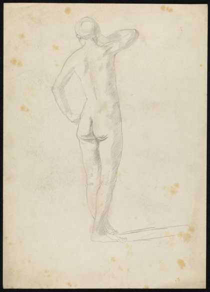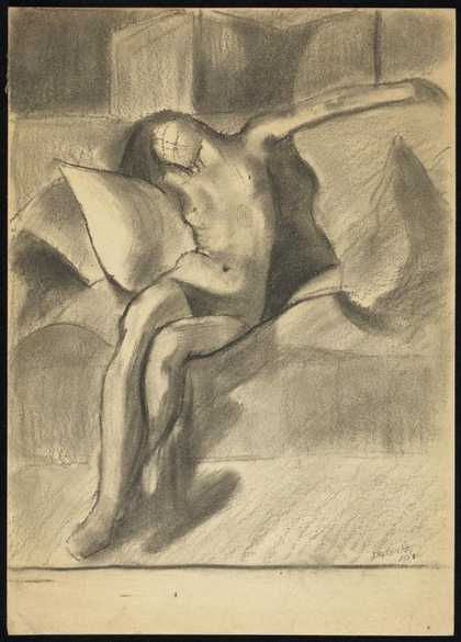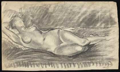 Dorothy Brett was a British painter, who studied at the Slade School of Art, associating with Dora Carrington, Barbara Hiles and the Bloomsbury group, from 1910 until 1916. She became known by her surname only and like Carrington and Hiles, she had her hair cut short (for the time) in a style that led Virginia Woolf to call them 'cropheads'. Through fellow student Mark Gertler, she met Lady Ottoline Morrell and began mixing in an artistic and literary circle that included Clive Bell, Bertrand Russell, D. H. Lawrence, Virginia Woolf, Augustus John, Aldous Huxley, and George Bernard Shaw. She became particularly close to Lawrence and his circle, who after visiting Taos, New Mexico for the first time in 1923 returned to London, where he held a dinner party at the Cafe Royal (which he called "The Last Supper"). There he tried to recruit friends to move to Taos in order "to create a utopian society he called 'Rananim'". While almost all who attended had "agreed to follow Lawrence to New Mexico....when it came to the actual packing for departure, there was only one recruit - the Honorable Dorothy Brett". Brett remained there for the rest of her life, becoming an American citizen in 1938. These 41 sketches and prints were completed by Brett while a student at the Slade School of Art. Most of the works depict studies of male and female nudes, but there are also several self-portraits, and prints and sketches showing biblical and fantastical scenes.