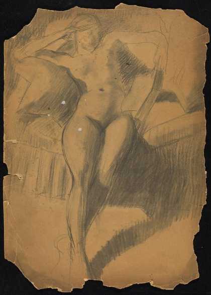 Sketch of a female nude reclining on a sofa