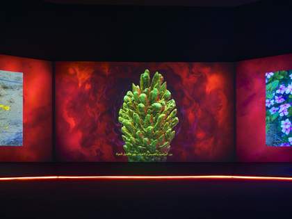 His video installation The Desert Keepers (2022) shines a light on how some plants in the Arabian desert take the genes from other plants, and pass them on to their offspring, to maximise the species’ future chance of survival.