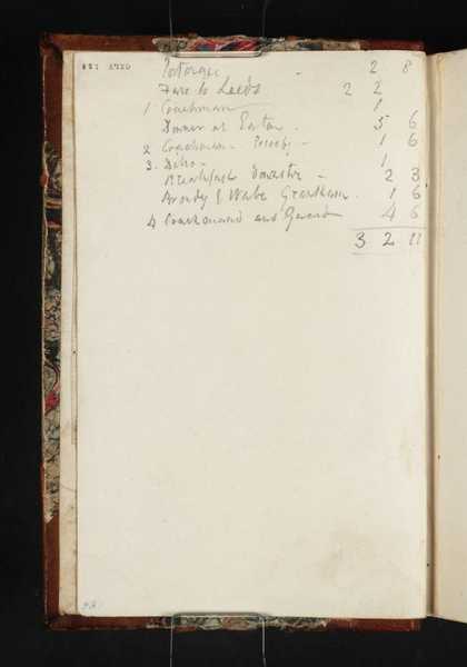 You might like Left Right Inscription by Turner: Notes Concerning a Commission Joseph Mallord William Turner ?1801 Inscription by Turner: A Note of Expenses in Travelling from London to Leeds Joseph Mallord William Turner 1816 ?Armley Church, near Leeds; Calculations Joseph Mallord William Turner c.1824 Inscription by Turner: Financial Notes Joseph Mallord William Turner c.1830 Inscription by Turner: Financial Notes Joseph Mallord William Turner c.1830 Inscription by Turner: Financial Notes Joseph Mallord William Turner c.1830 ?Study for ‘Leeds’ Joseph Mallord William Turner c.1816 Inscription by Turner: Notes Joseph Mallord William Turner c.1834–6 Inscription by Turner: Notes Joseph Mallord William Turner c.1834–6 Inscription by Turner: Financial Notes Joseph Mallord William Turner c.1830 Inscription by Turner: Miscellaneous Notes Joseph Mallord William Turner c.1826–33 Inscription by Turner: ?Architectural Notes Joseph Mallord William Turner 1833