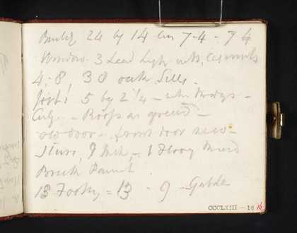 You might like Left Right Building Dimensions (Inscriptions by Turner) Joseph Mallord William Turner c.1808–25 Notes of Building Materials (Inscriptions by Turner) Joseph Mallord William Turner 1809 Inscription by Turner: Prices of Building Materials Joseph Mallord William Turner c.1808–12 Inscription by Turner: ?Notes for a Continental Itinerary Joseph Mallord William Turner c.1817–19 Inscription by Turner: Financial Notes Joseph Mallord William Turner c.1830 Inscription by Turner: Notes Joseph Mallord William Turner c.1834–6 Inscription by Turner: Building Specifications Joseph Mallord William Turner c.1830 An Arcaded Building; Inscription by Turner: Notes Joseph Mallord William Turner 1828–9 Inscription by Turner: A Note Joseph Mallord William Turner c.1806–7 Inscription by Turner: ?An Architectural Note Joseph Mallord William Turner 1814 Inscription by Turner: A Financial Note Joseph Mallord William Turner 1808 Inscription by Turner: A Note Concerning a Delivery Joseph Mallord William Turner 1814