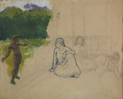 Gauguin was a post-impressionist artist. He was influenced by folk art and primitive art, and kept detail to a minimum in his paintings. He used bold flat areas of colour, like in this painting called Harvest: Le Pouldu.