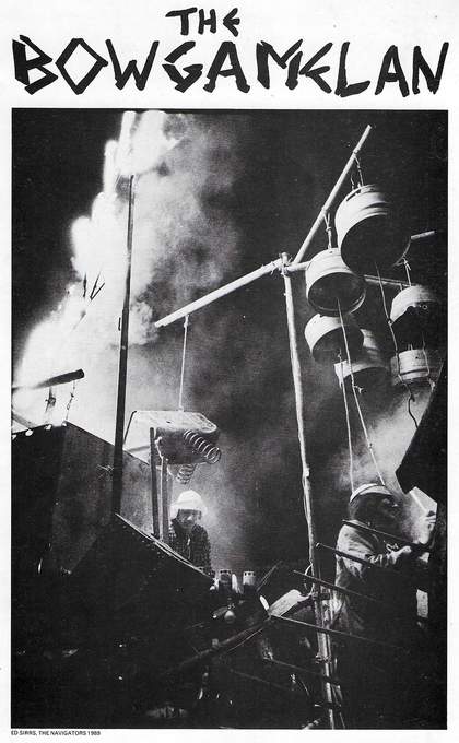 Another appealing trait was Bankside Power Station’s position beside the Thames. Bean, Burwell and Richard Wilson, a sculptor, knew the river intimately. They had first met at artists’ studios at Butler’s Wharf, on the South Bank near Tower Bridge. Burwell and Wilson both had boats, and ‘out of curiosity’, explains Bean, the three of them explored the Thames and its smaller tributaries. During a boat trip up Bow Creek in 1983, the trio formed what became known as Bow Gamelan Ensemble, and their work quickly became associated with the river. For their work The Navigators 1989, they spent six weeks living on a flotilla of barges on the Thames, presenting a series of waterborne performances.