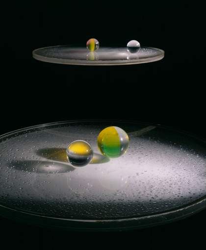 LL I have been inspired and intrigued by aerogel, a silicon dioxide that is only two per cent matter and 98 per cent air. I have explored the way it reacts to light in a series of works, Stardust Ruins 2008. Although a block of aerogel may feel solid, it can’t reflect light in the way solids normally do, so projecting images of my travels on to fragments of aerogel appear as changing, moving colours (Heavenly Fragments 2008). It dissolves reality, confirming the Buddhist claim that reality is illusory.