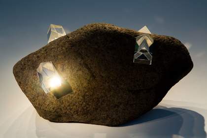 With Homage to Milarepa 1972 and In the Valley of Darkness 1973, I began to create the dramas that climaxed in Conjunction of Opposites 1983–6 –two large, mixed-media, performing sculptures that enact a computer-controlled, six-minute drama, which includes movement, song, the transformation of sound to light, and a laser display. I also made a series, Prism Stones 1977, with which I tried to heal the divide between nature and technology by melding optical glass prisms to natural, timeworn stones. This series eventually led to Sunstar: begun in 2005, it is an ongoing ecological work that uses prisms to create solar installations in the landscape. Light is not only a metaphor in my work.