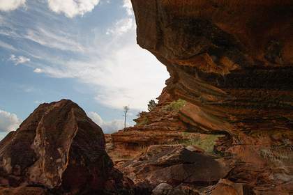 We were shown small secrets: caves carved into the rock faces by time and weather, offering shelter and more. The women whispered stories of family members who had previously lived in these caves, among them Emily Kam Kngwarray as a girl. On occasion, they called out to their Ancestors. Once inside the hidden caves, a number of drawings – delicate lines etched into the stone – spoke to us of a connection to the Country that transcended time.